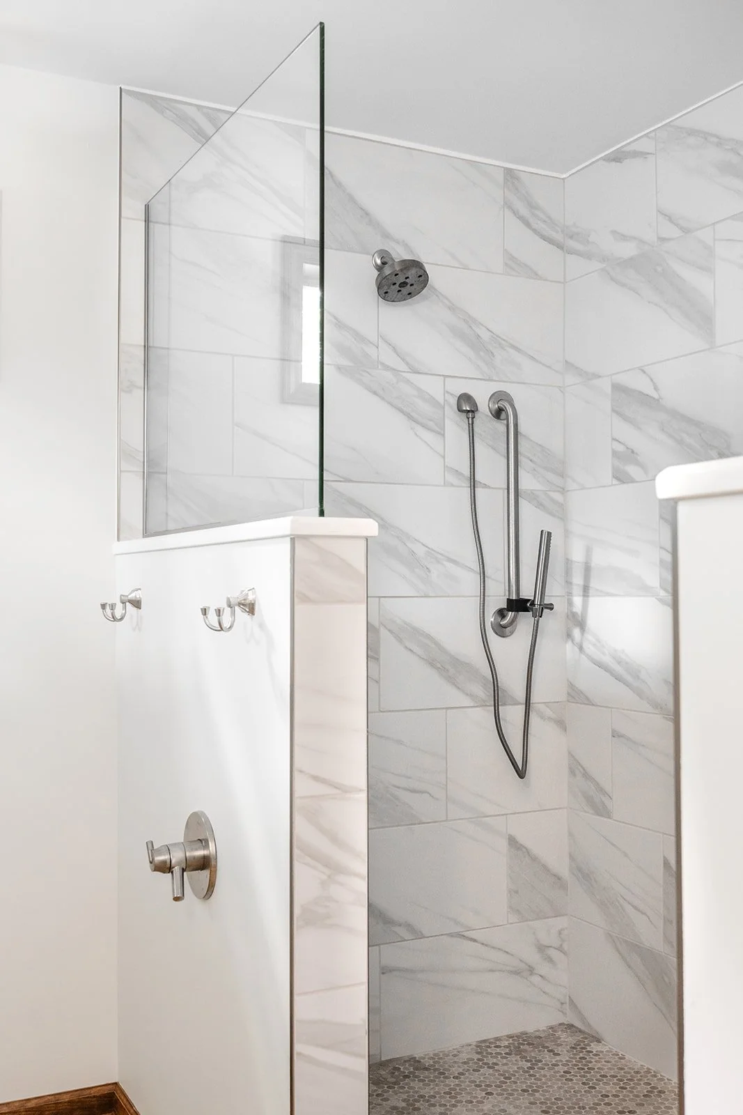 This addition was designed to bring all essential living spaces onto one floor, creating comfort and accessibility for clients eager to age in place. An unused formal living room was thoughtfully reimagined as a main-level master suite, complete with a spacious walk-in closet and a stunning, accessible bathroom. The bathroom blends beauty with function, offering ease of use without sacrificing style. A seamless transition ties the new wing into the original home, with open circulation, abundant natural light, and finishes that respect the existing architecture. The result is a future-ready retreat that supports independence while elevating everyday living.